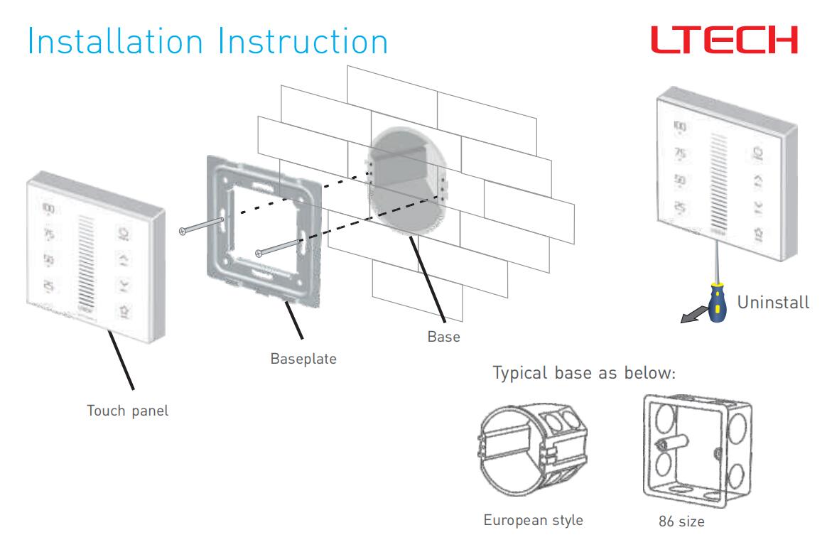 1 Piece of LTECH RF Wireless Wiring E1S-AD Series Touch Panel Dimming