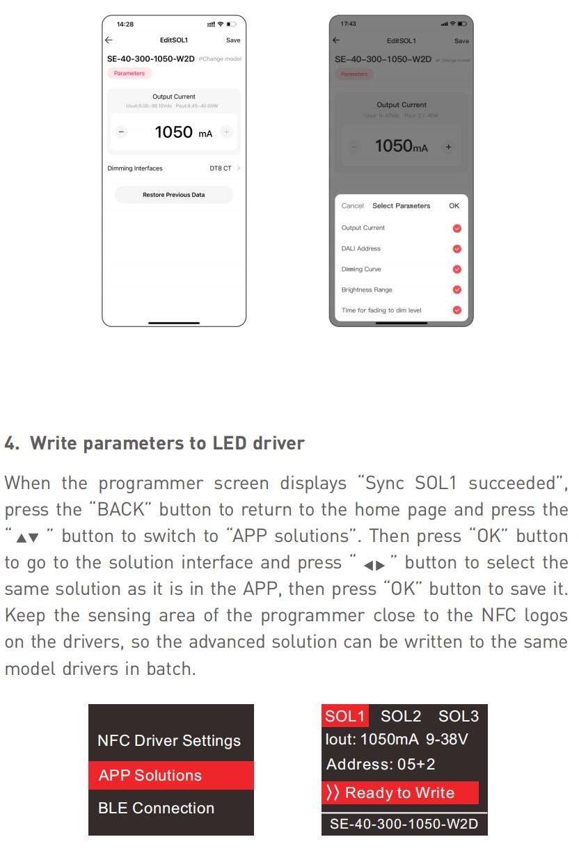 the needs. Then hold your phone close to the drivers to write the advanced parameters to the drivers;